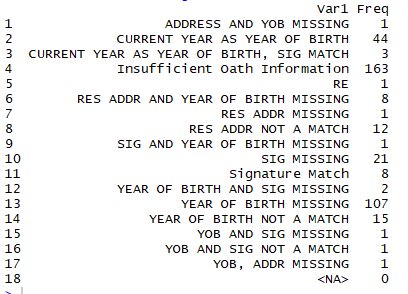 A frequent logged reason for a ballot rejection is a problem with birth year on the return envelope. This suggests to me a language issue or poorly designed return envelope. I've spoken with lawyers who will inspect the envelopes to understand this better