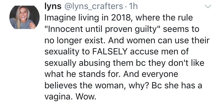 “Apparently now we live in a time where people can make accusations,” they say, which presupposes that once there was a time when people couldn’t make accusations, and that was better.