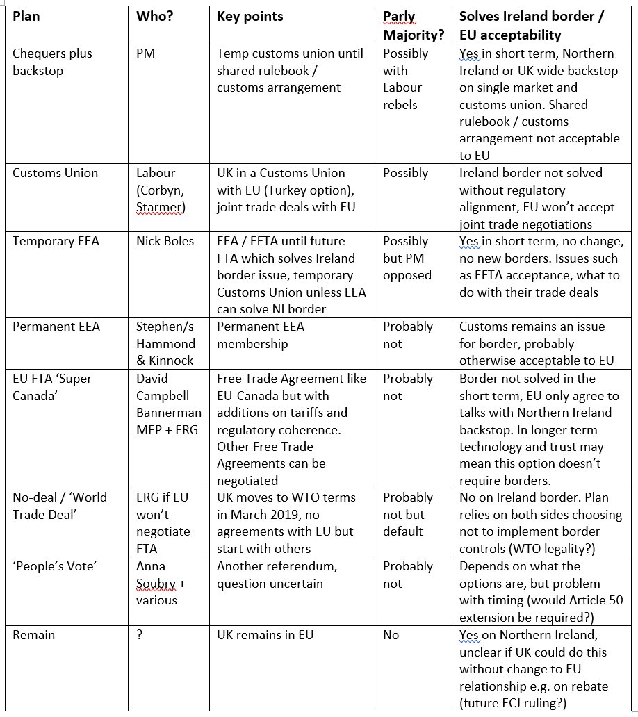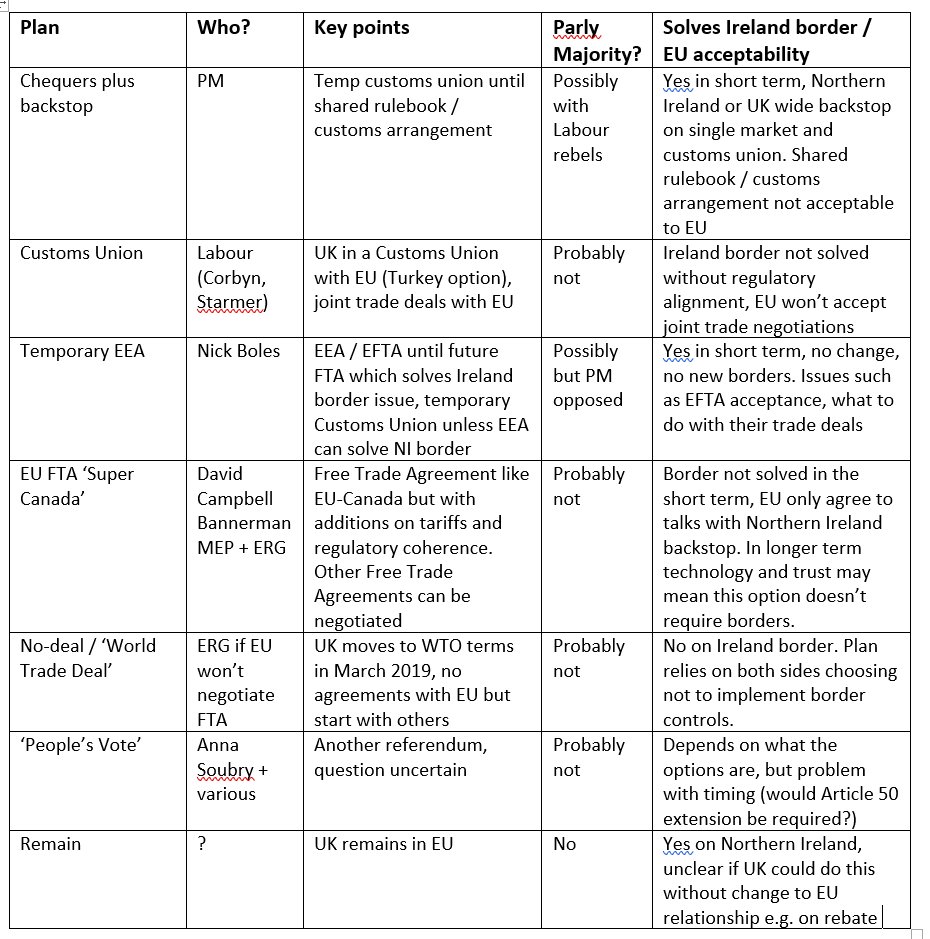 An updated version of my summary of Brexit proposals being discussed variously in the UK. Thanks for the huge amount of feedback, much of which remains to be incorporated.