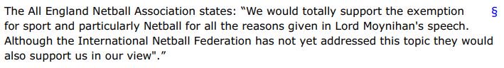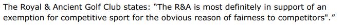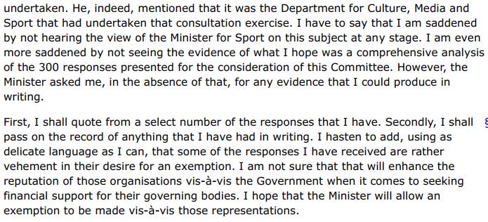 Apparently, NOT ONE sporting body wished for anything but an exemption.
