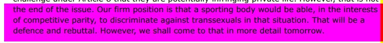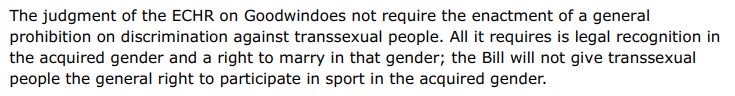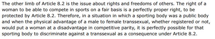In fact, the govt claimed that "it is perfectly possible ...to discriminate against a transsexual" in sports.