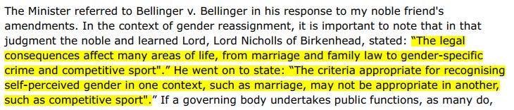 Funnily enough, although the govt argued that all females were to be rendered legally indistinguishable from MalesWithFemalePersonalities 'for all purposes', they DID decide that sports was a bridge too far.