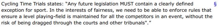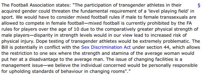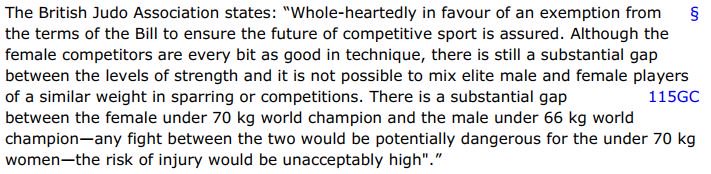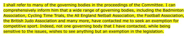 Every sporting body knew this law was unfair, and potentially dangerous to women and children. They all wanted exemptions so that they wouldn't be forced by the law to treat men as if they were women.