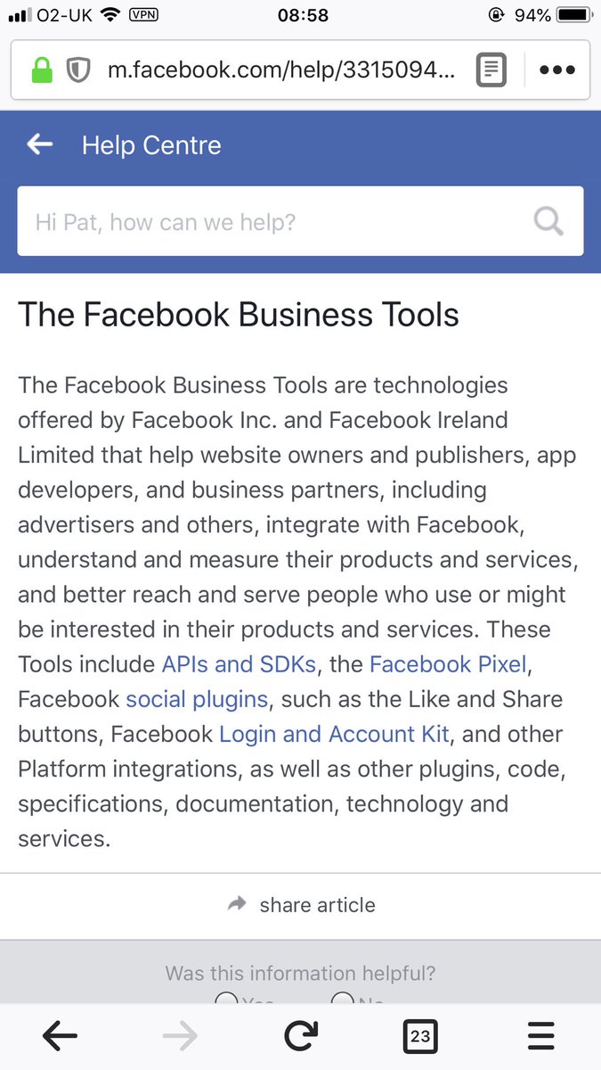 24/ "The Facebook Products also include Facebook Business Tools, which are tools used by website owners and publishers, app developers, business partners (including advertisers) and their customers to support business services and exchange information with Facebook …” 25/