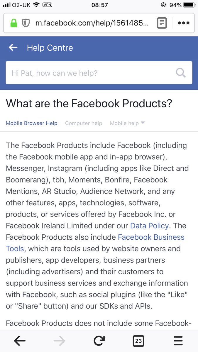 14/ "You can check on this website portal.facebook.com/privacy for any more in depth question about the privacy policy” and which takes you to the Facebook Data facebook.com/policy/