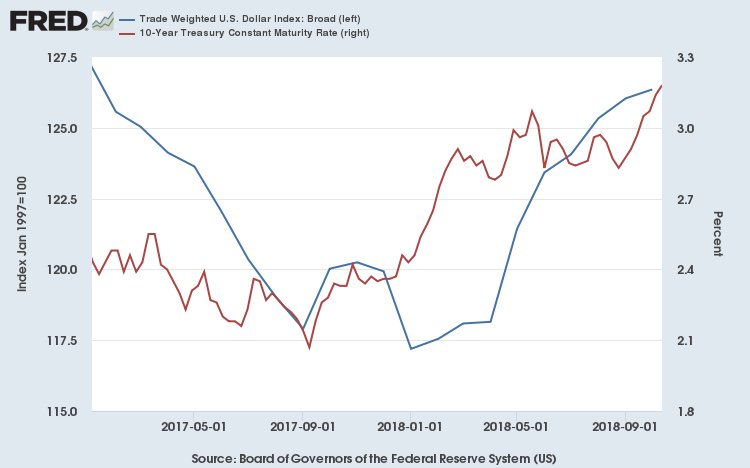 But here's the thing: crowding out takes time -- time for higher interest rates to drive the dollar up and reduce housing starts, time for the stronger dollar to worsen the trade deficit. And the post tax cut rise in $ and long-term rates didn't start until January 4/