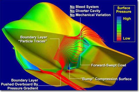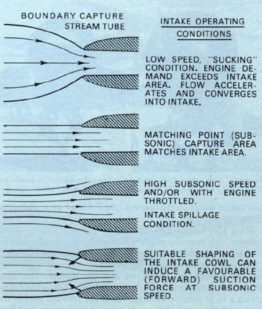 اتلاف تکانه (Momentum) هوای اضافی در حالی که به دور لبه ورودی هدایت میشود، باعث ایجاد پسار (Spillage Drag) میشود. اگرچه این را میتوان با شکلدهی مناسب لبهٔ ورودی، و الغاء مکش در لبه، ... (43)