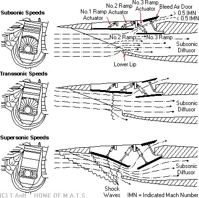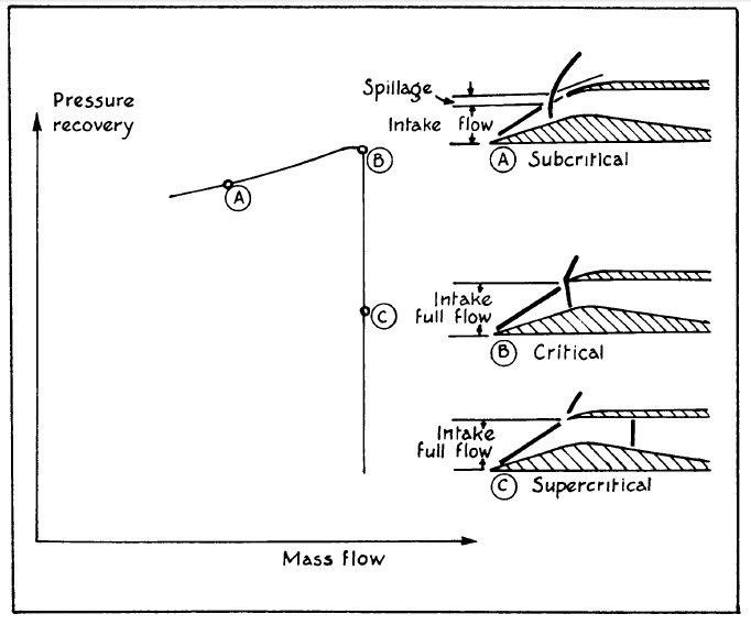 برای مثال، معمولاً در 2.2 ماخ، کاهش %8 در بازیافت فشار (Pr=0.92) باعث کاهش %13 در رانش و افزایش %5 در مصرف سوخت می شود. (8)