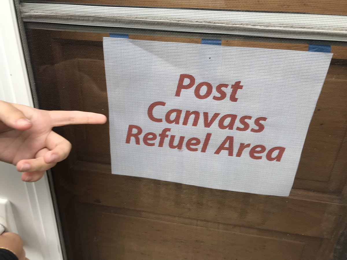 After 81 doors and occasional snow this morning, nothing was more delightful than a post-canvass refuel area stocked with coffee, baked goodies, and heat. Organizers, take note.