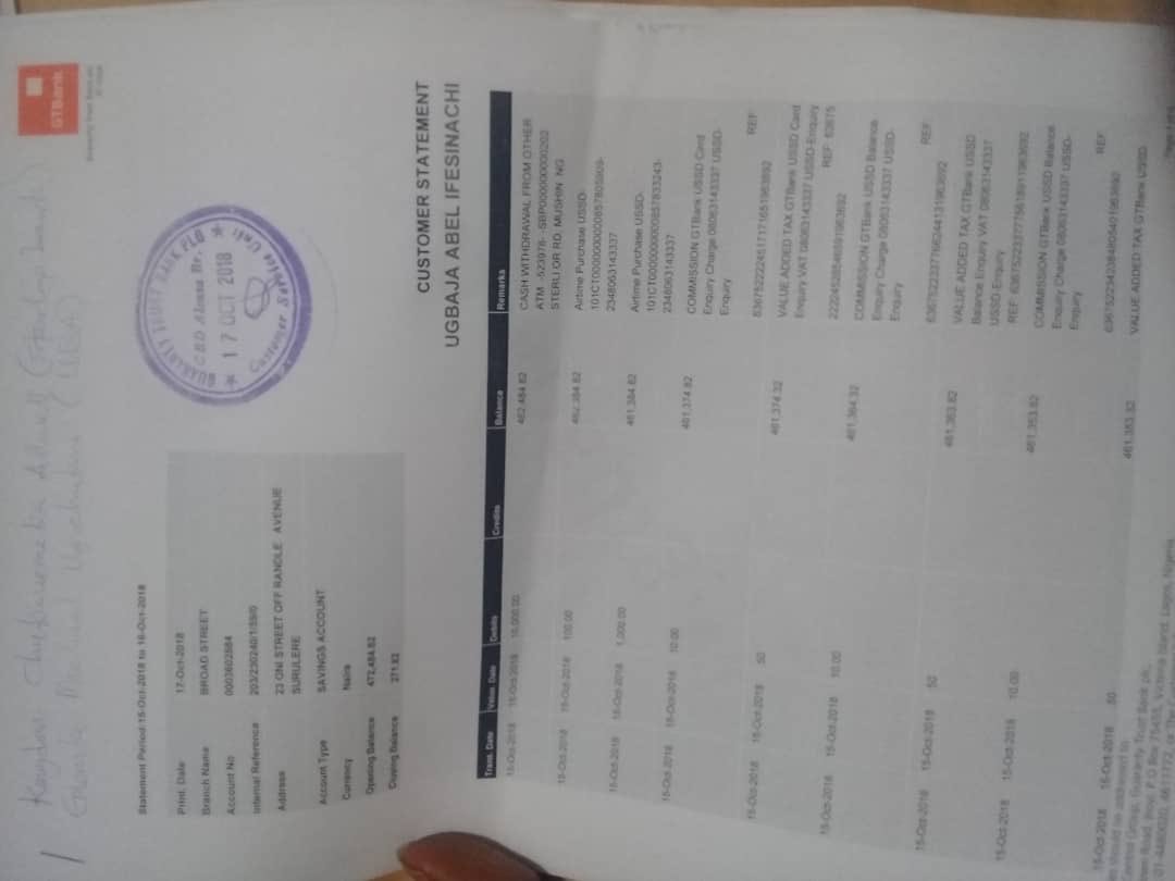 My phone was stolen from me on my way to work on the 15th october, 2018 at FADEYI bus stop and before i was able to block my account i noticed that there has been unauthorized deduction of about #462,000.00 on my @gtbank account 0003602884 that same day.