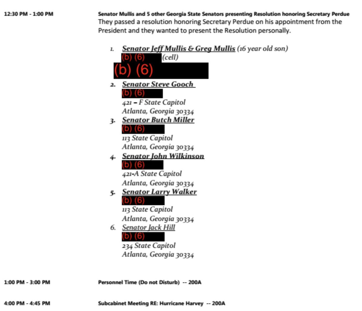 Another entry shows Georgia Senators “honoring Secretary Perdue on his appointment from the President." documentcloud.org/documents/5011…