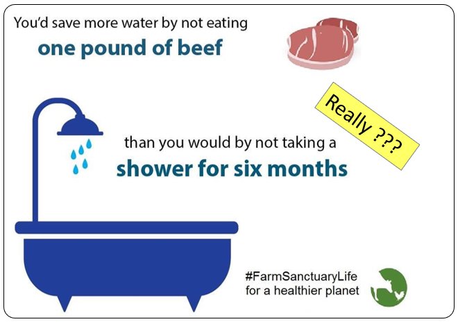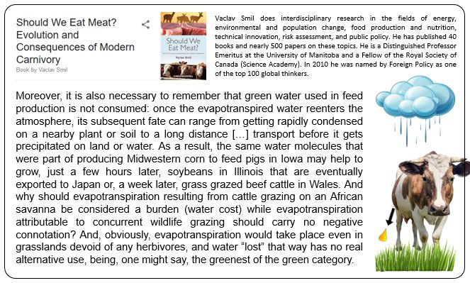 As for cows & global warming (), the link between meat and water use is usually misrepresented. The thread below tries to demonstrate how the commonly cited number of 15,000 (!) liters of water per kg of beef is a very misleading one.