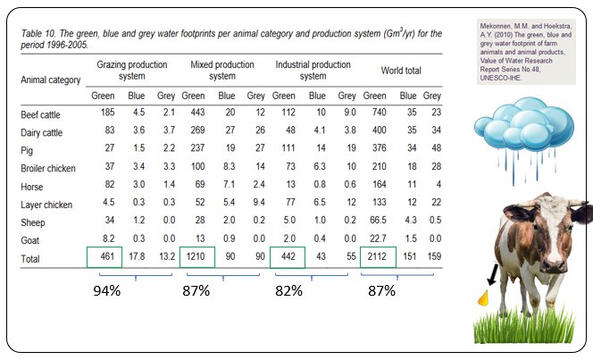 Each livestock management system obviously has its own characteristic input of green water, although the latter is the most important category for all systems.