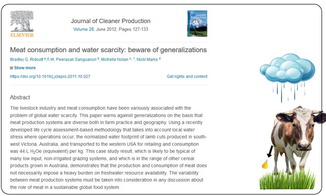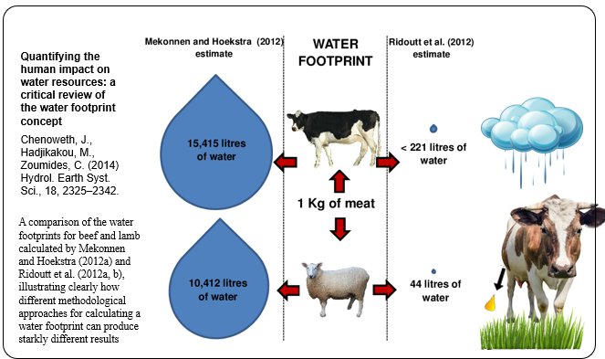 Likewise, lamb meat production does not necessarily impose a heavy burden on freshwater resource availability, being of the order of only 44 L/kg for lamb cuts.