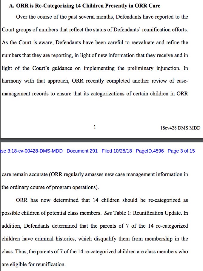 Since the last status report on 10/15, the feds say they've discharged another 41 kids in HHS care (that can mean reunification w/ a parent or release to a sponsor). There are still 47 kids separated from parents in ORR care assets.documentcloud.org/documents/5021…