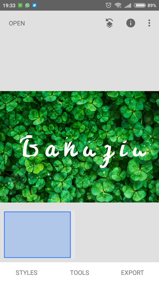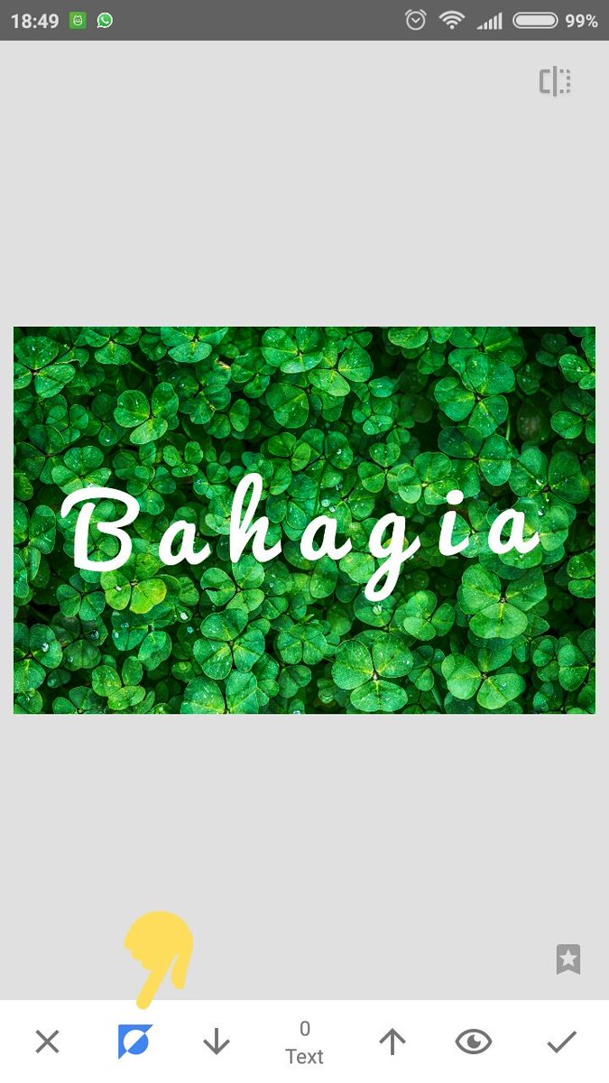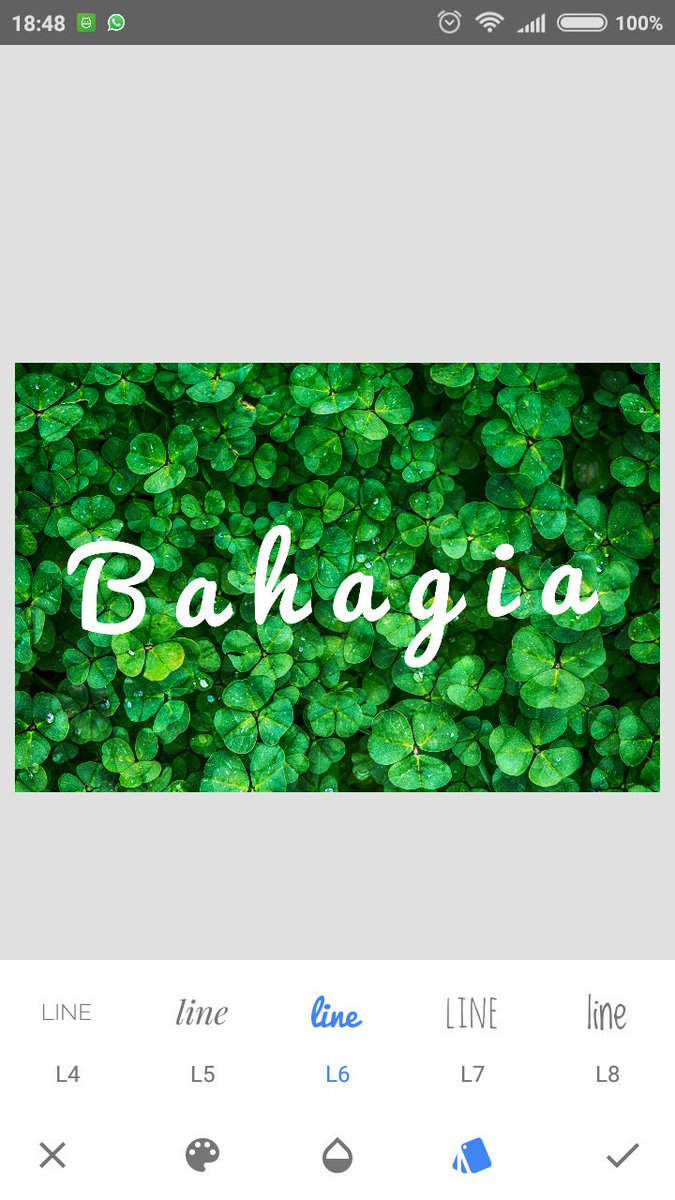 Kedua memasukkan teks. Setelah gambar udh dimasukin, selanjutnya kita masukin teksnya. Caranya tekan aja menu teks. Tulis deh, gw nulis bahagia biar bahagia :'). Disini gw pake style teksnya L6.