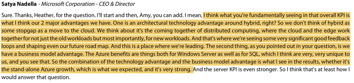 Of course... all CEO's market their stock... but even so here are some useful if rudimentary ideas from MSFT's Q1 19 call. Some are even accurate!