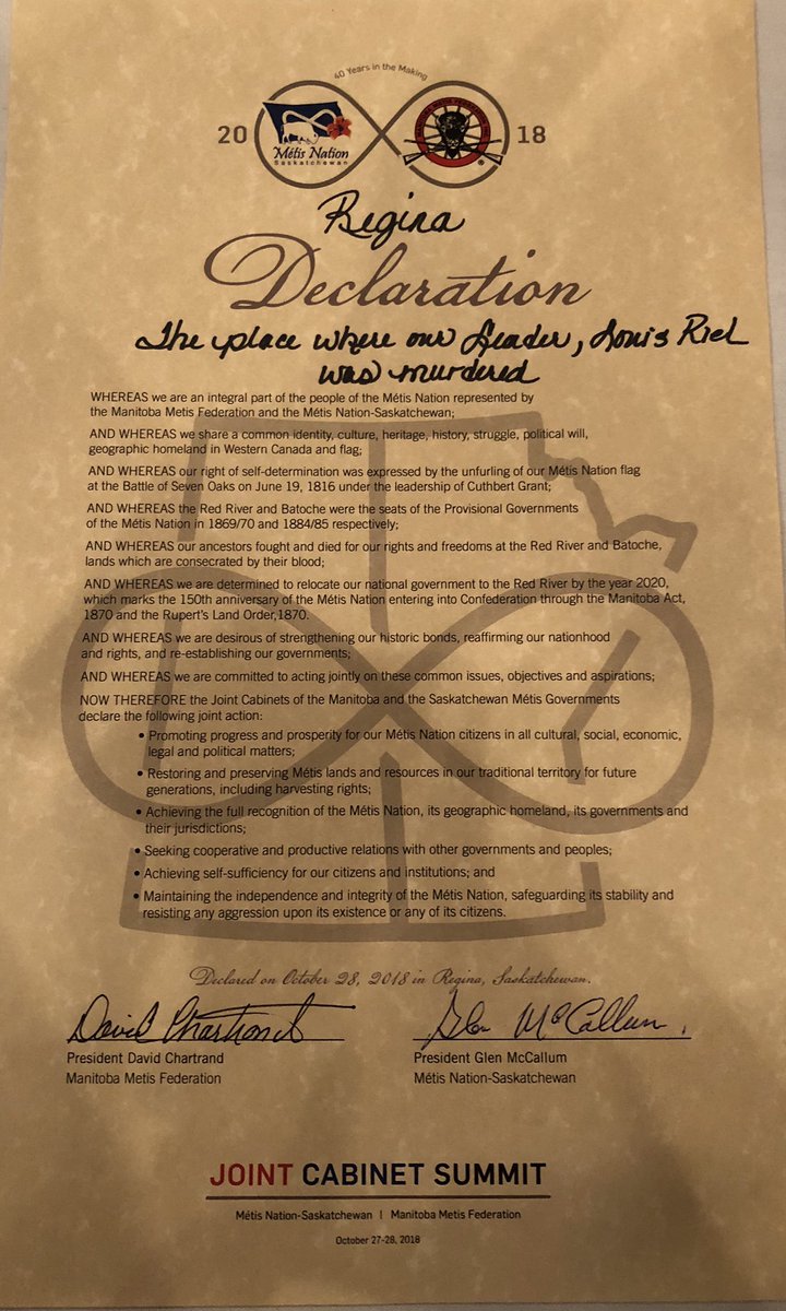The Regina Declaration of our two #Métis Governments just laid the foundation. 3/3 @MBMetis_MMF @MNC_tweets #ReginaDeclaration