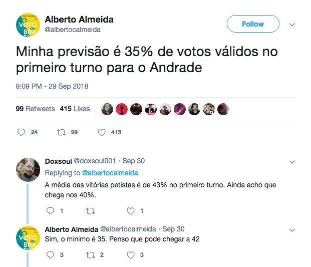 Era uma vez @albertocalmeida. Alberto escreve livros. Alberto escreveu sua previsão eleitoral em um livro.