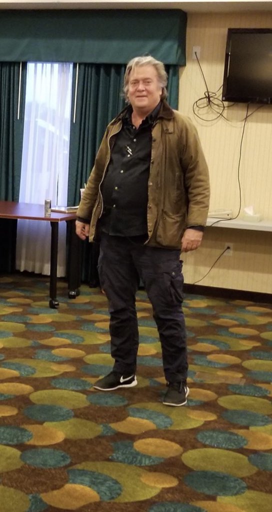 Steve Bannon speaking to a crowd of 17 at the North Topeka Holiday Inn. And to think, the New Yorker Ideas Festival skipped on a chance to book this guy, a guy who clearly is in sync with the heartbeat of American politics.