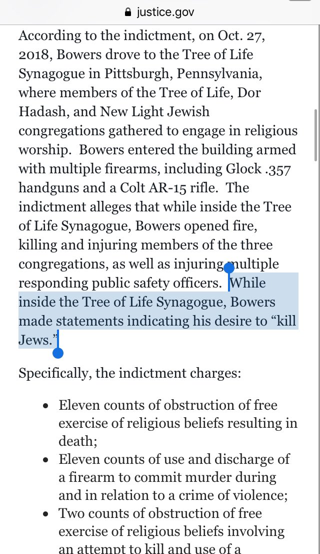 Pennsylvania Man Charged with Federal Hate Crimes for Tree of Life Synagogue Shooting justice.gov/usao-wdpa/pr/p…