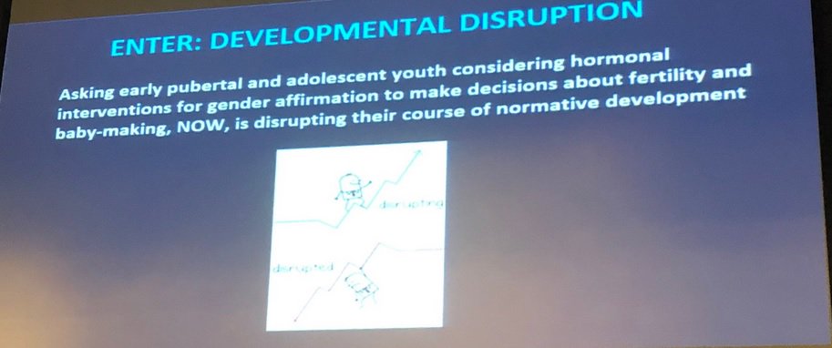 1/ Read whole thread, w/ slides from Diane Ehrensaft discussing fertility concerns for kids on blockers + cross sex hormones. She basically argues kids this age are TOO YOUNG to make decisions re: fertility (& shouldn't even be asked--"disrupts" development), but...