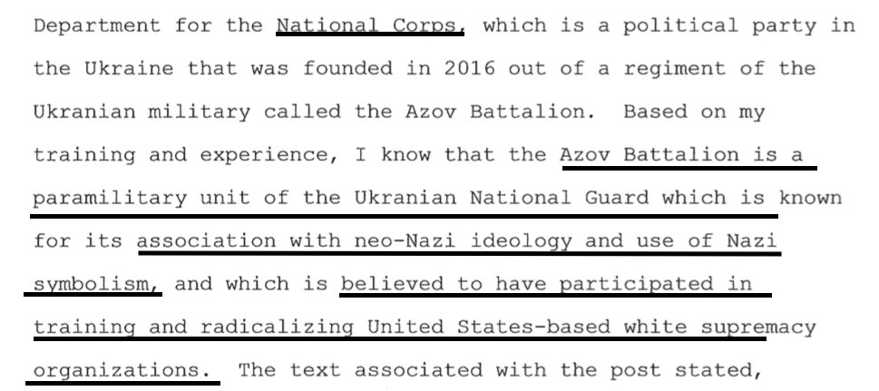 "Azov... is believed to have participated in training and radicalizing United States-based white supremacy organizations".