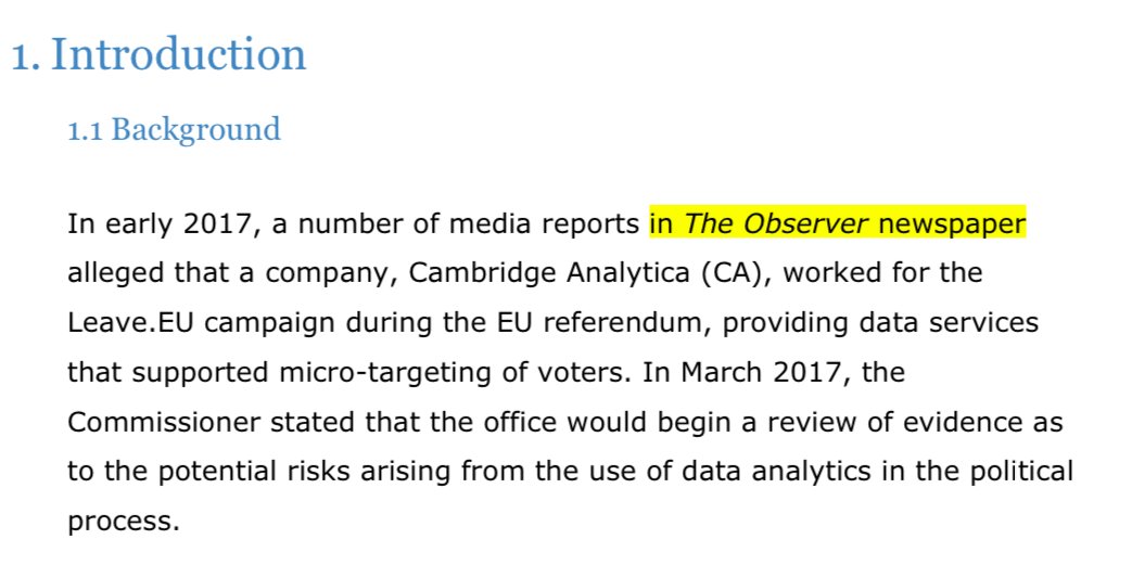 C'mon now, @Channel4News. Wiping crazy @carolecadwalla from history is one thing. But @ObserverUK has underpinned every single thing you've done on this story & the investigation that you called "unprecedented in time, scale & complexity" which led your bulletin with this evening