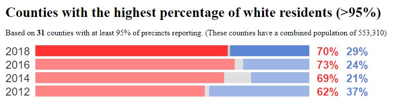 Again, early, but so far, Republicans' support in the whitest U.S. counties has eroded a little since 2016 (based on competitive House races).