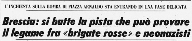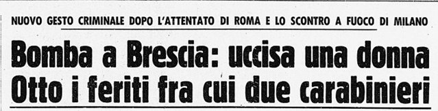 Quello scenario, con grida, feriti, e una donna in terra straziata dalle schegge i bresciani lo avevano già vissuto due anni prima in Piazza della Loggia. Un nuovo attentato quindi? Una una nuova, tragica tessera nel mosaico degli anni di piombo e delle stragi?