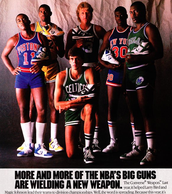 5. Nike era, en 1984, una marca sin apenas presencia en la NBA. La líder era Converse. Prácticamente todos los grandes jugadores llevaban sus zapatillas. Y Nike quería expandirse más allá de las pistas de atletismo.