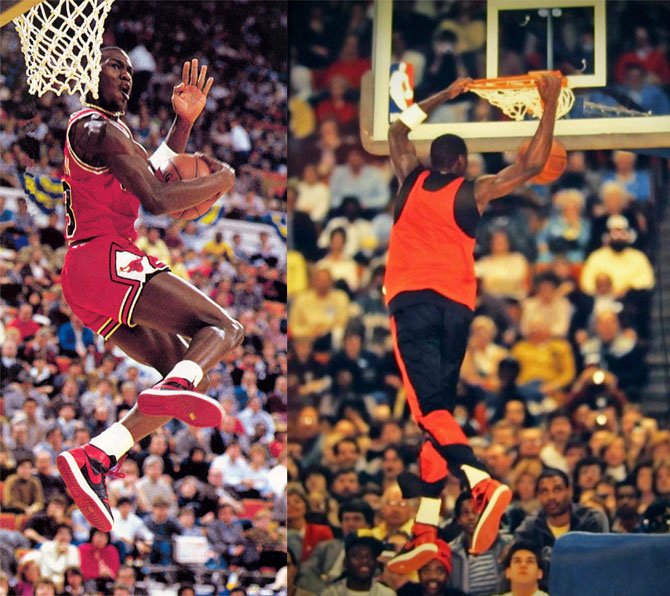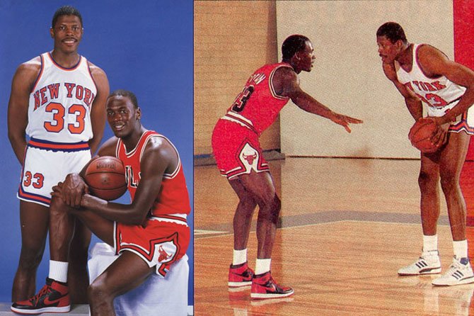 12. Jordan sí que usa el modelo prohibido cuando puede,como en este mítico anuncio junto a Patrick Ewing. Esto ayuda a alimentar la leyenda.
