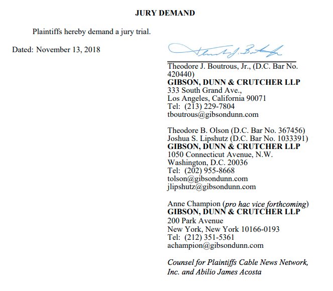 While @dominicholden is down in Florida covering recounts, Ted Olson — George W. Bush's lawyer in the 2000 Florida recount — is suing Trump and the White House (along with his colleague, @BoutrousTed) over its treatment of the press. buzzfeednews.com/article/tasnee…