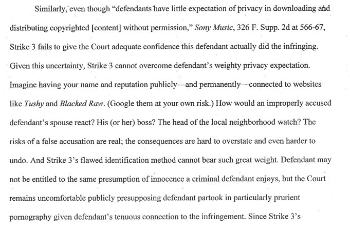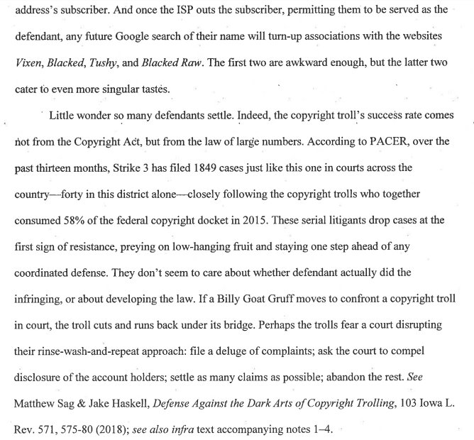 In legal news that has nothing to do with midterms or Trump or Mueller, and everything to do with porn and copyright: A DC federal judge issued a scathing opinion today against a copyright troll that goes to court to unmask anonymous Bittorrent users ecf.dcd.uscourts.gov/cgi-bin/show_p…