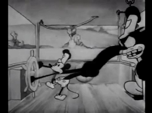 When Mickey & Minnie kiss, they momentarily look EXACTLY like Oswald The Lucky Rabbit & his girlfriend. I wonder if this was a deliberate middle finger to Charles Mintz, the producer who screwed Walt & Ub Iwerks out of the character they created.