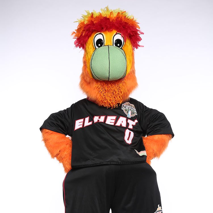Now, the first one that made me do a double take: Burnie, of the Miami heat. Strong color/shape match, deeply unsettling, but no hockey or baseball affiliation, so no way to meet Phanatic or get Gritty into hockey. Plausible, but I have two more that are better matches.