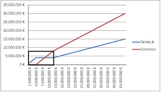En principio, las preferred se llevarían 10M y los 90M restantes irían a los common, que estarán encantados.