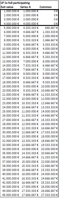 O sea, las preferred convertirán en common (30%=30M) y todos irán a prorrata