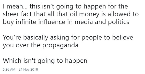 A politician with a personal past in the oil/gas industry should be impossible, utterly impossible.