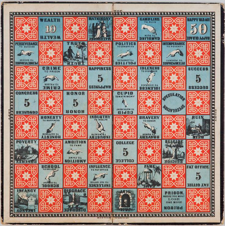 ‘The Checkered Game of Life’ (1866). Manufactured by Milton Bradley of Springfield, Massachusetts.
