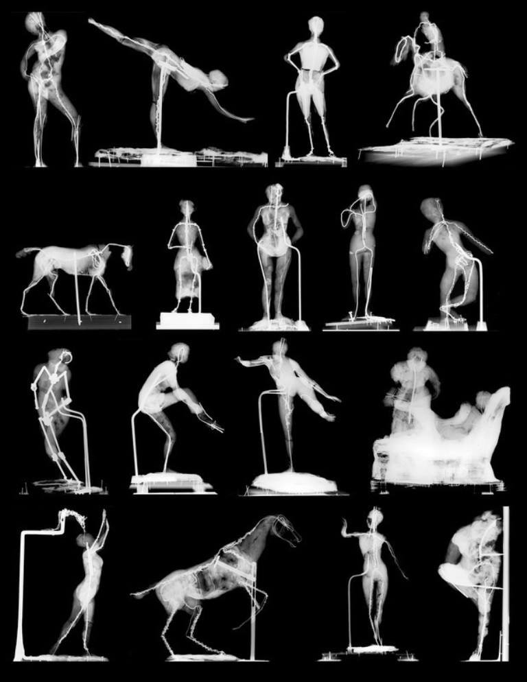 Radiographs of Edgar Degas wax sculptures at the National Gallery of Art in Washington revealing a variety of armatures