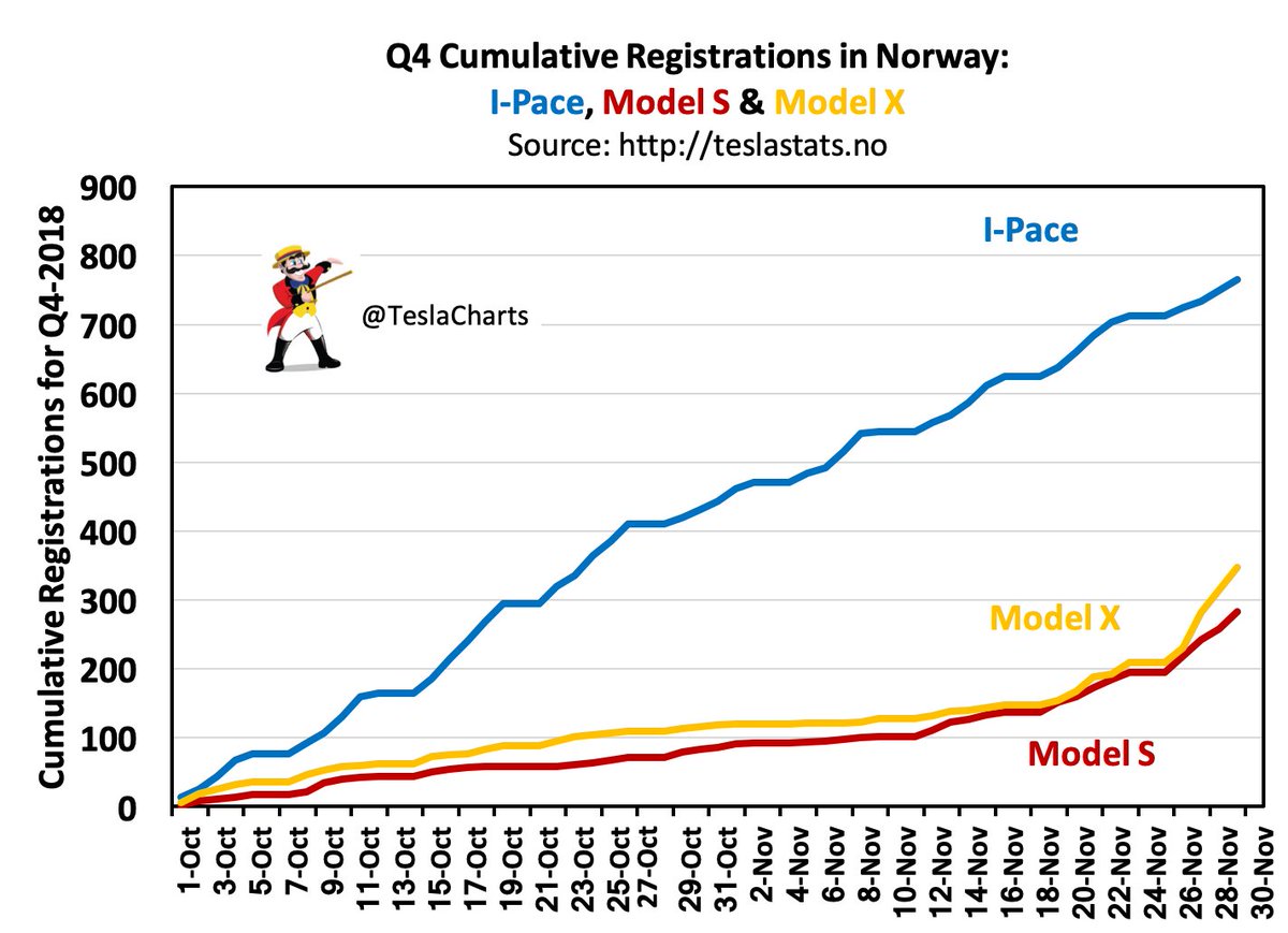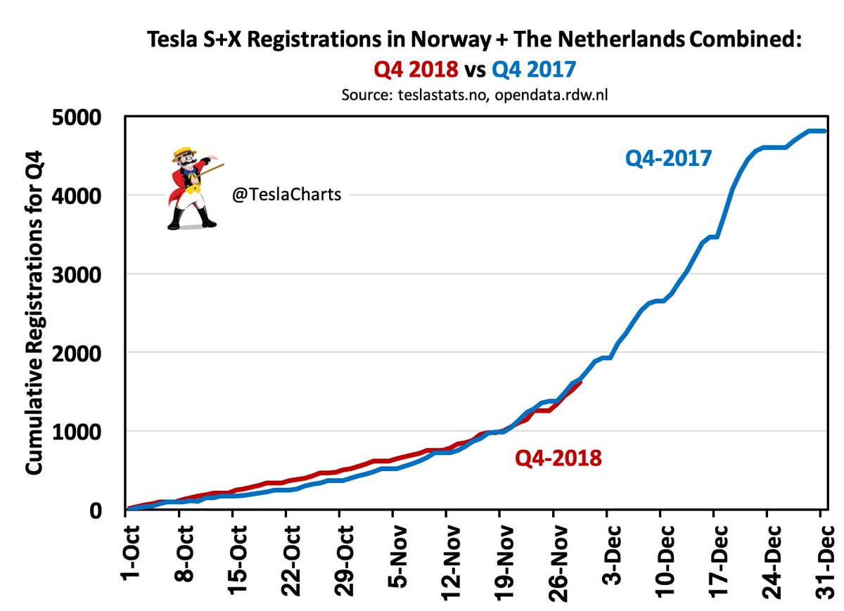 1/ Time for the Friday night peak into how things are going in Europe for $TSLA. H/T to @AlexT18503601 for the data from The Netherlands. First up - Tesla is still tracking Q4 2017 results for Norway + NL combined.