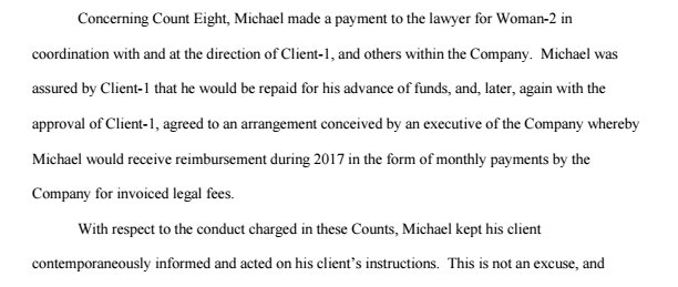 Michael Cohen takes a shot at Trump in his sentencing memorandum just filed by his lawyers. "Michael kept his client contemporaneously informed and acted on his client's instructions."