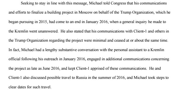 Cohen reiterates some important facts about Trump Tower Moscow. Says he kept Trump up-to-date on the negotiations and discussed Trump's possible travel to Russia.