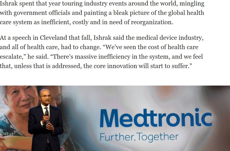 11 Et, pour corser le tout, Medtronic prétend avoir une mainmise totale sur certains services hospitaliers ou cliniques en proposant des deals gagnant-gagnant, des services intégrés (les médecins gagnent de l'argent, les cliniques font plus d'actes,mais les patients y perdent)
