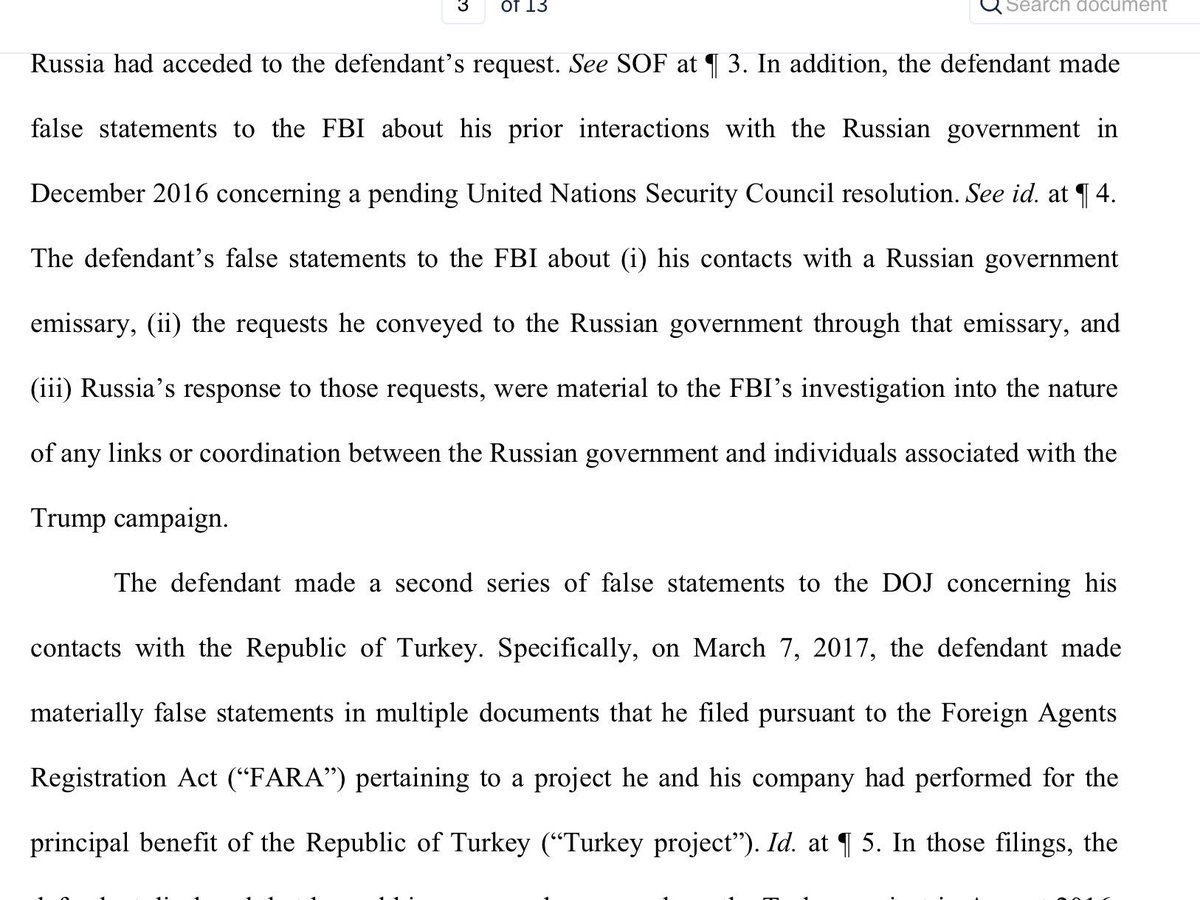 Woah. There is another bombshell in the Flynn filing: there was a quid pro quo! This says Flynn’s lies to the FBI about his call w/ Kislyak was “MATERIAL into the nature of any LINKS or COORDINATION” b/w Russia and the “Trump campaign.” Here’s why this is big: 1/
