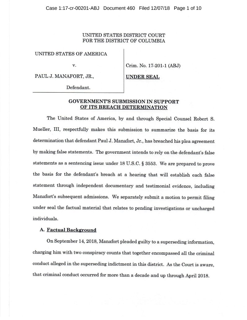 Here's special counsel Robert Mueller's description of Paul Manafort's breach of his plea agreement. (1/3)