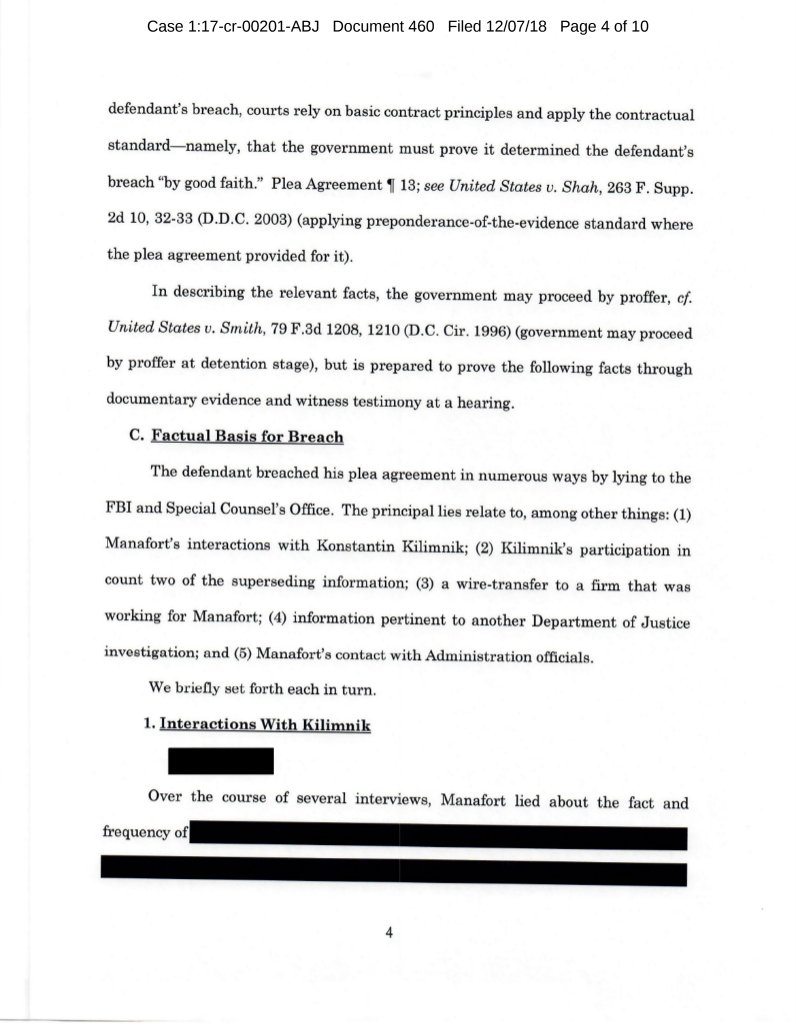 Here's special counsel Robert Mueller's description of Paul Manafort's breach of his plea agreement. (2/3)