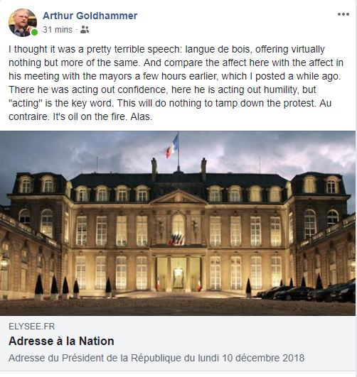 Yellow vests were channelling legitimate grievances and perpetrating illegitimate violence, searching disorder and anarchy.