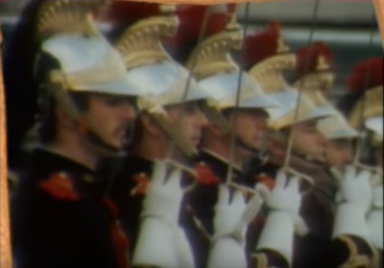 Cuando el avión tomó espacio aéreo francés, dos reactores lo escoltaron. Fue recibido por la Guardia Nacional Republicana, junto con los himnos de Francia y Egipto. Esta imagen es de aquel día: